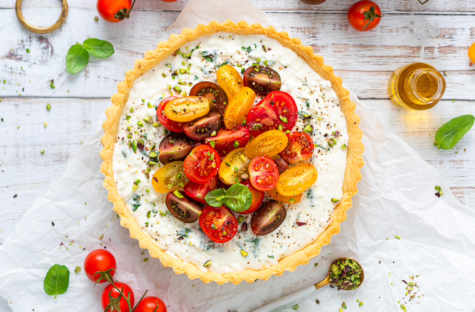Con la complicità di “una discreta quantità di pomodorini colorati”, Sara ha realizzato un’irresistibile torta salata che vede come ingrediente principale il nostro Squacquerone di Romagna DOP. Due sapori affini che si esaltano a vicenda, stemperando il gusto intenso dei pomodori nella morbidezza delicata e nelle note lattee del formaggio fresco. Non vedete l’ora di assaggiarla, vero? Niente di più facile, basta seguire la ricetta!